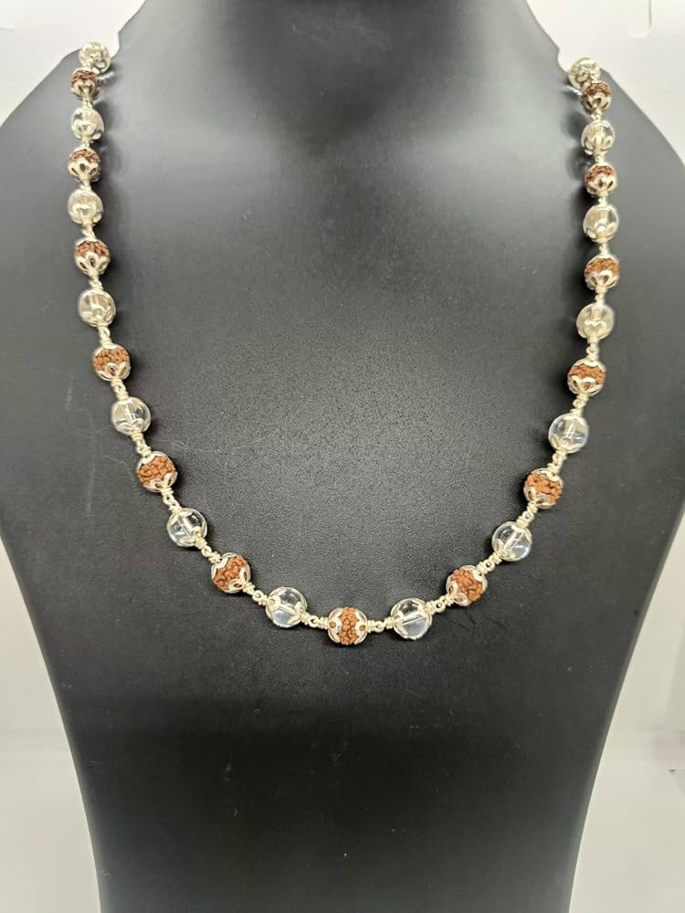 Channel divine energy with the 5 Mukhi?Rudraksha Mala, beautifully crafted with 27 silver moti?s for a blend of spirituality and elegance. Designed for both men and women, this sacred mala promotes inner peace, positivity, and protection. Whether for meditation or daily wear, it serves as a powerful symbol of devotion.